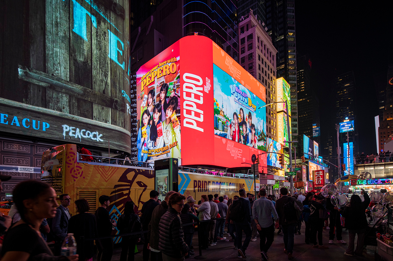 10월 21일부터 타임스퀘어에 위치한 ‘TSX 브로드웨이(TSX Broadway)’ 빌딩의 초대형 스크린에 빼빼로 뉴진스 광고가 게재됐다. 이어서 11월 11일에는 해당 옥외광고가 정면으로 보이는 뉴욕 타임스퀘어의 중심부 ‘파더 더피 스퀘어(Father Duffy Square)’에 빼빼로데이가 낯선 현지인 및 세계 각국에서 온 관광객을 위한 프로모션 행사가 열렸다. 빼빼로를 맛볼 수 있는 공간과 포토존 그리고 소중한 사람에게 빼빼로로 메시지를 나누는 이벤트존을 통해 빼빼로의 ‘나눔 문화’를 체험할 수 있게 했다. 또한, 미국에서 11월 11일은 군인들에게 감사의 마음을 전하는 ‘재향 군인의 날’로 특별히 한국전 참전 용사들도 참석해 이들에게 빼빼로를 통한 감사의 마음을 전하며 감동을 더했다.