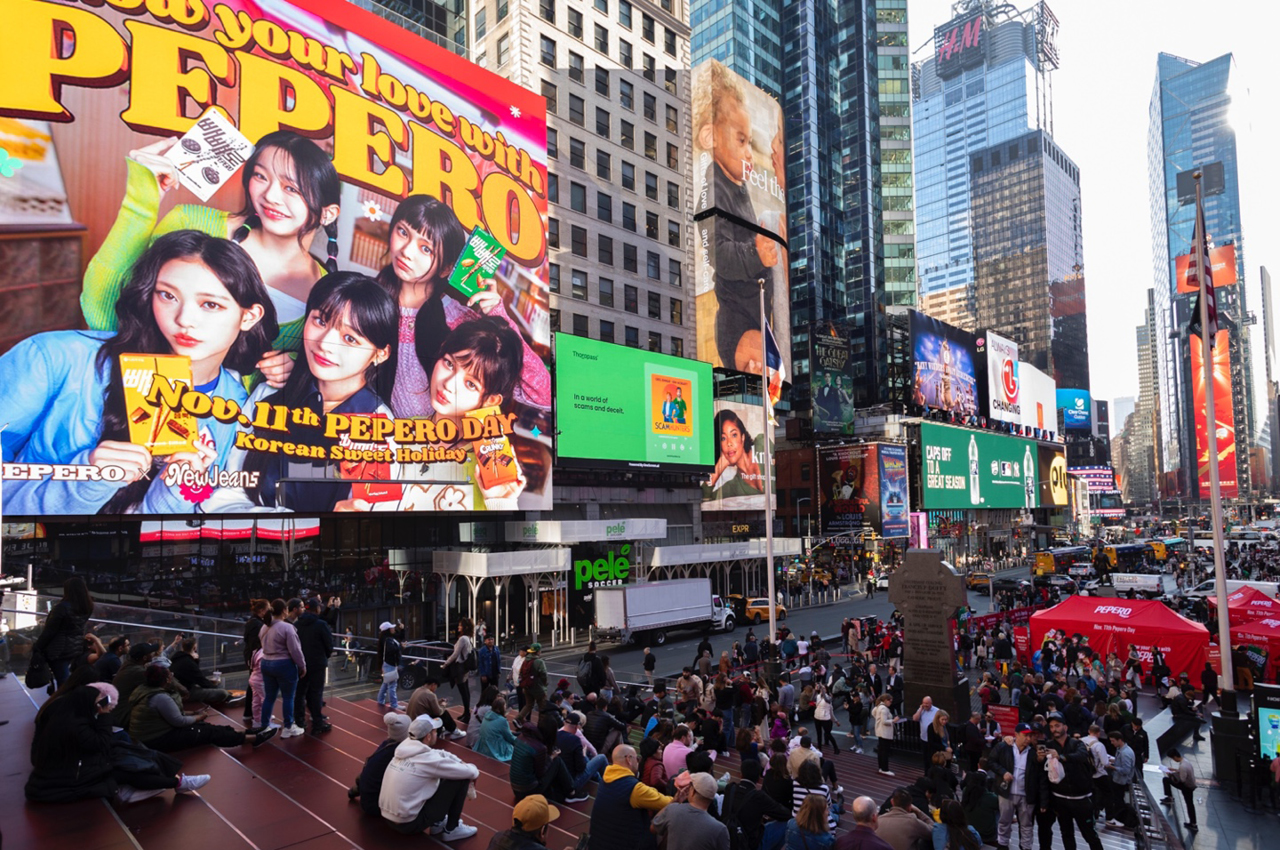 10월 21일부터 타임스퀘어에 위치한 ‘TSX 브로드웨이(TSX Broadway)’ 빌딩의 초대형 스크린에 빼빼로 뉴진스 광고가 게재됐다. 이어서 11월 11일에는 해당 옥외광고가 정면으로 보이는 뉴욕 타임스퀘어의 중심부 ‘파더 더피 스퀘어(Father Duffy Square)’에 빼빼로데이가 낯선 현지인 및 세계 각국에서 온 관광객을 위한 프로모션 행사가 열렸다. 빼빼로를 맛볼 수 있는 공간과 포토존 그리고 소중한 사람에게 빼빼로로 메시지를 나누는 이벤트존을 통해 빼빼로의 ‘나눔 문화’를 체험할 수 있게 했다. 또한, 미국에서 11월 11일은 군인들에게 감사의 마음을 전하는 ‘재향 군인의 날’로 특별히 한국전 참전 용사들도 참석해 이들에게 빼빼로를 통한 감사의 마음을 전하며 감동을 더했다.