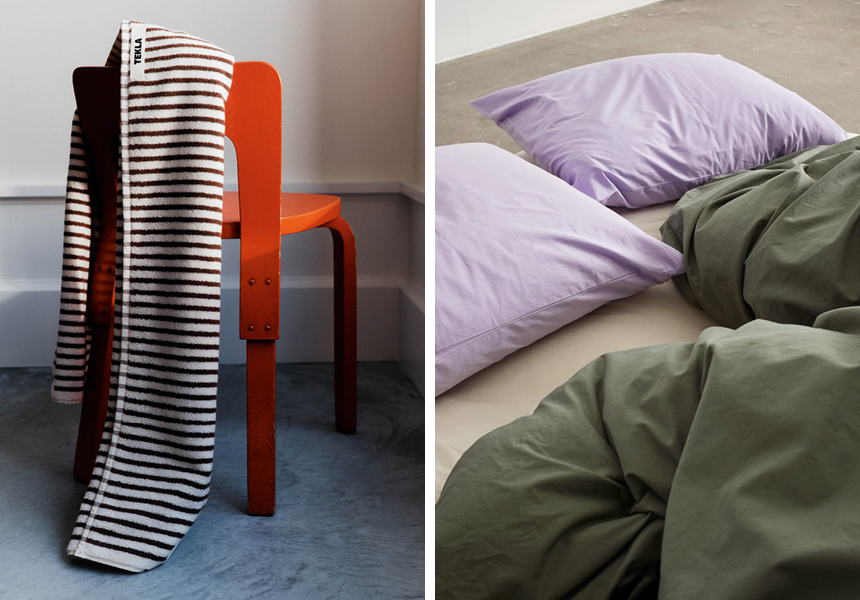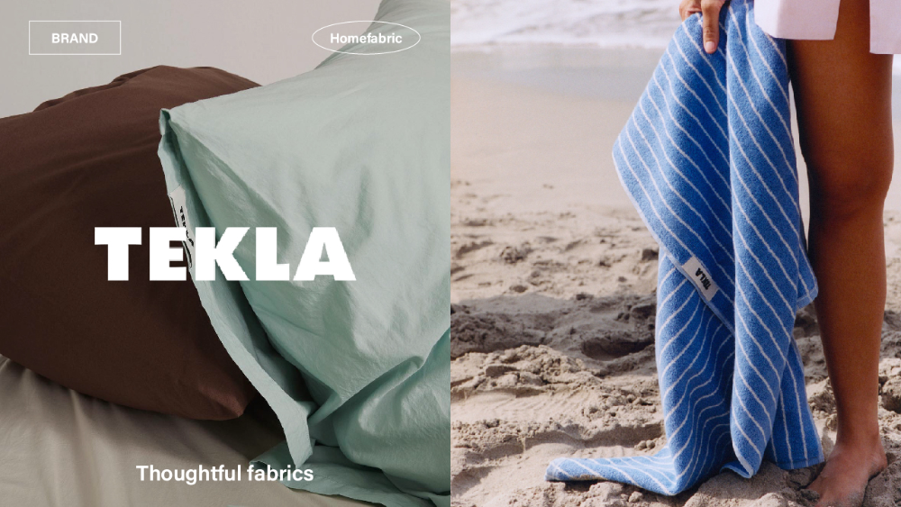 요즘 인스타그램의 피드를 넘기다 보면 자주 등장하는 브랜드, 테클라(Tekla) 얘기다. 보기만 해도 눈이 시원해지는 산뜻한 단색의 침대 시트와 줄무늬 파자마, 테리 소재의 푹신한 수건 등의 이미지에 한 번, 하단의 역시나 군더더기 없이 단순한 브랜드 로고에 또 한 번 눈길이 간다.
