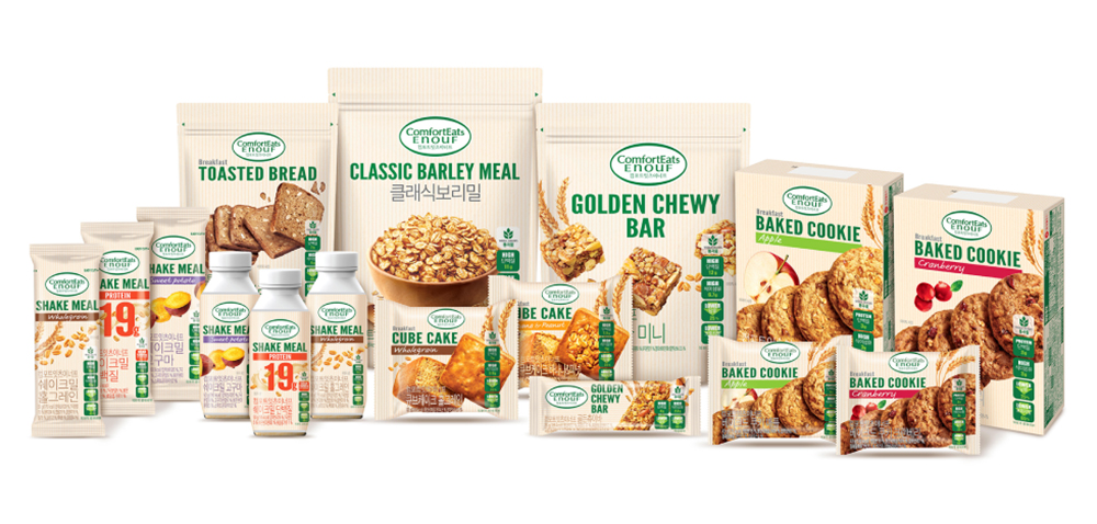‘컴포트잇츠이너프’는 헬스&웰니스를 지향하는 롯데웰푸드의 새로운 브랜드입니다. 쿠키부터 쉐이크밀, 시리얼, 바 등 다양한 제형으로 소비자들의 까다로운 입맛을 사로잡기 위해 총 6종으로 출시했습니다. 간편한 먹거리를 의미하는 ‘Comfort Eats’와 하루를 위한 충분한 영양이라는 ‘Enough nutrition of your fine days’를 결합한 브랜드명으로 ‘제과형 식사대용식’이라는 새로운 장르를 선보이고자 합니다.