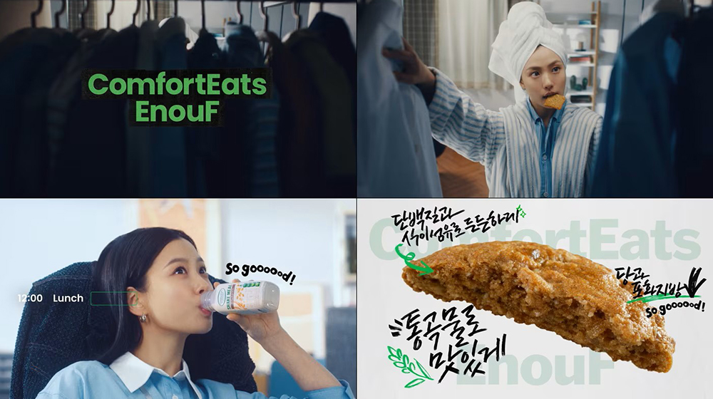 오전 8시, 하루의 시작을 준비하는 고민시 님의 여유로운 모습으로 광고가 시작됩니다. 이어 등장하는 씬에서는 자유분방하면서도 자기 계발에 몰두한 모습으로 직장에서 점심시간을 활용해 화상 언어 수업을 듣고, 퇴근 후에는 운동을 하면서 간편하게 제품을 섭취하는 모습이 시선을 사로잡습니다. 온전히 자신에게 투자하는 하루를 보내며 ‘컴포트잇츠이너프’로 식사를 챙긴 모델이 “아침을 여유 있게, 점심을 자유롭게, 저녁을 의미 있게”라는 내레이션으로 브랜드가 가진 편의성과 영양감을 동시에 전달합니다.
