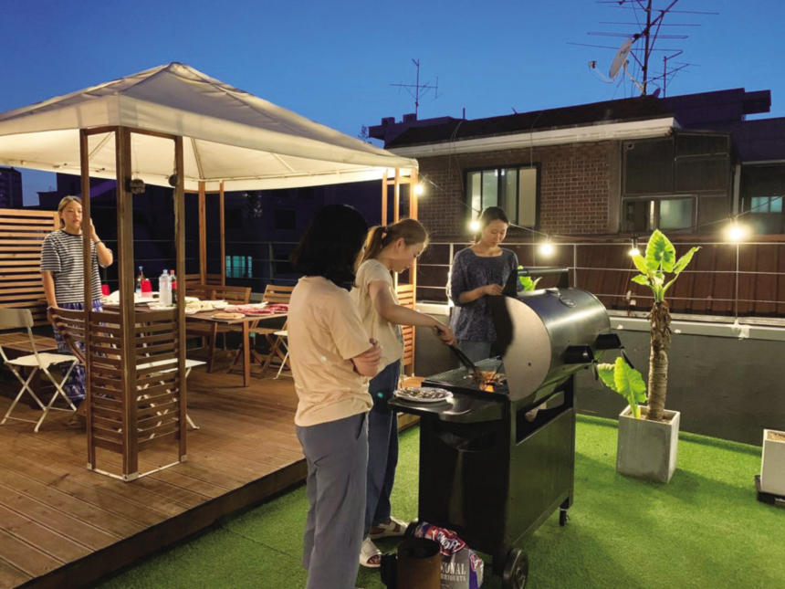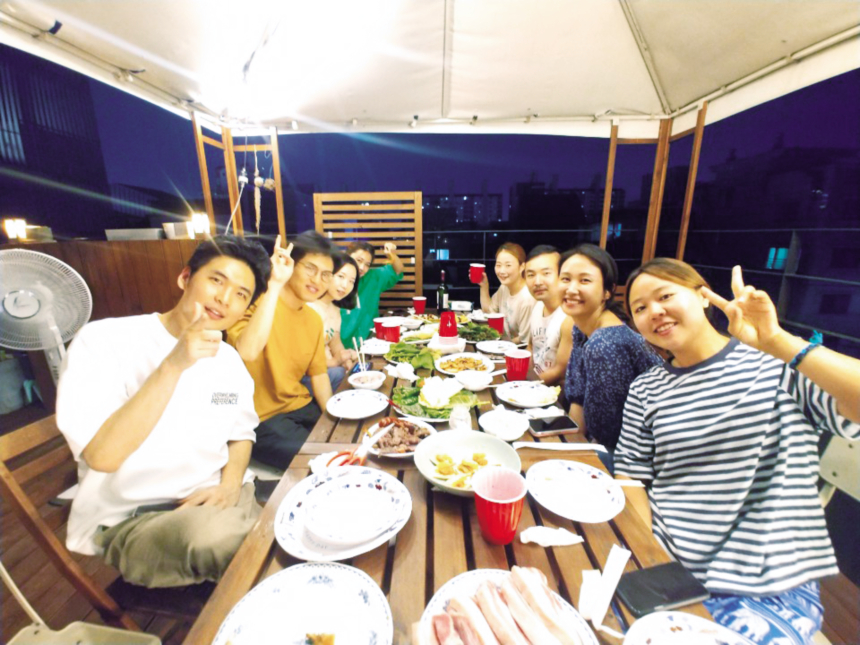 그렇게 금요일 근무가 끝나자마자 속속들이 연남동에 루프탑을 가진 파티룸으로 모인 멤버들. 기분이 저기압이면 고기 앞으로 가라고 했던가. 넉넉한 고기와 주류 앞에 모두가 인심과 마음까지 넉넉해졌다. 서로 자기가 고기를 굽겠다는 훈훈한 모습을 연출하며 이어진 술자리. 나눌 이야기도 많은데 말끝이 길면 너무 낭비라는 생각에 서로 야자타임을 가지며 서로의 사는 이야기를 나눴다. 웃고, 같이 혀를 차고, 축하하고, 슬퍼한다고 위로하며 눈꺼풀의 무게를 버텨가다 보니 어느덧 새벽 5시였다.