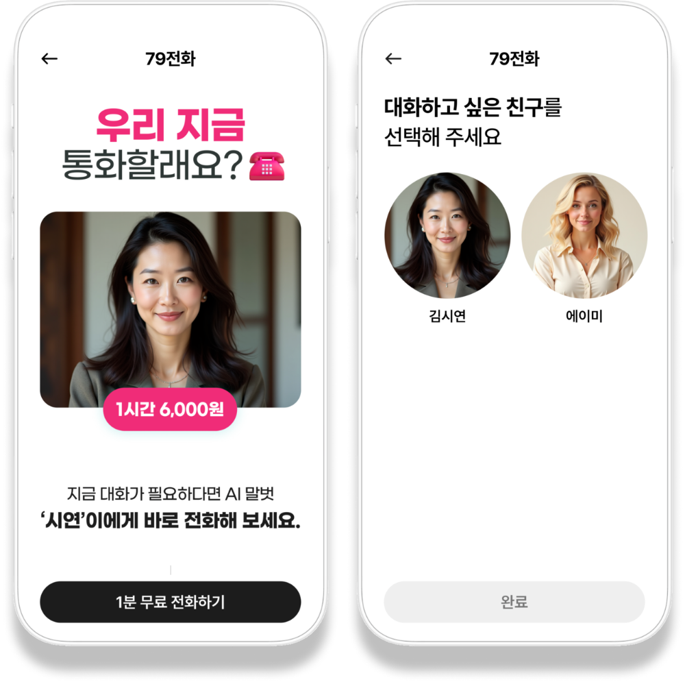 ‘79전화’는 언제든 전화 한 통으로 따뜻한 위로와 대화를 나눌 수 있는 AI 친구 ‘김시연(한국어)’과 ‘에이미 윌리엄스(영어)’를 제공합니다. 단순한 대화를 넘어 이들은 이전 대화 내용을 기억하고 관련 질문을 하는 등 자연스러운 소통을 통해 마치 오랜 친구와 대화하는 듯한 착각을 불러일으킵니다. 특히 ‘에이미 윌리엄스’는 해외 거주 경험이 있는 시니어들을 위한 맞춤형 서비스를 제공합니다.