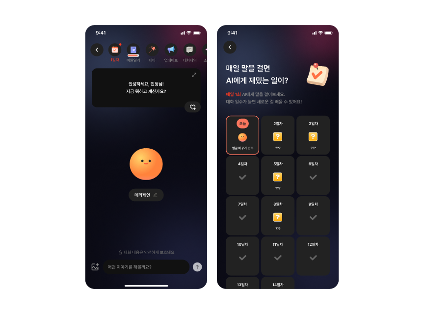 뤼튼 앱은 사용자의 기본 정보와 관심사를 바탕으로 맞춤형 AI를 생성합니다. 선택된 대화 스타일과 지속적인 상호작용을 통해 AI는 사용자의 대화 패턴을 학습하고 자연스러운 소통을 제공합니다. 앱 내 ‘비밀일기’ 기능은 AI의 이해도를 확인하고 함께 일기를 작성하는 특별한 경험을 선사합니다. 단순한 외로움 해소를 넘어 뤼튼의 AI는 ‘성공습관’ 기능을 통해 목표 설정부터 계획수립, 동기부여까지 지원합니다. ‘마라톤 완주’나 ‘월세 탈출’과 같은 목표달성을 위한 든든한 지원자 역할을 수행하며 사용자의 생산성 향상에도 기여합니다.