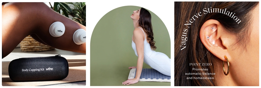 미국 뉴욕에서 급성장하고 있는 브랜드 ‘WTHN(within, 위딘)’은 동양의학을 기반으로 한 모던한방 스튜디오다. WTHN은 온열매트와 함께 침술, 아로마테라피, 사운드 명상 등을 결합해 몰입적 치료 경험을 제공하며 차분하고 세련된 웰니스 경험을 유도한다. 스튜디오에서의 특별한 경험은 셀프케어 제품 구매와 경험으로 이어지는데 사용이 쉽고 스타일리쉬한 제품들이 인기를 끌고 있다. 가장 인기 있는 제품 중 하나는 ‘바디 컵핑 키트(Body Cupping Kit)’로 전통적인 부항 요법을 현대적인 감각으로 재해석했다. 기존의 유리 부항과 달리 실리콘 소재를 사용해 안전성과 편리성을 높였으며 요가나 필라테스 등 운동 후 회복을 돕는 힙한 아이템으로 자리 잡고 있다.