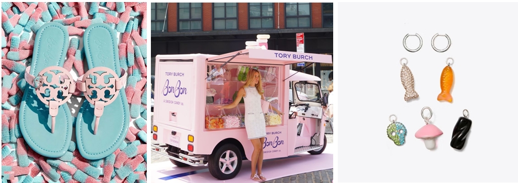 패션 브랜드 토리버치(Tory Burch)는 최근 스웨덴의 컬트 캔디 브랜드 본본(BonBon)과의 한정판 협업을 통해 장난기 가득한 여름 컬렉션을 선보였다. 픽앤믹스 사탕에서 영감을 받아 다양한 질감과 색감, 달콤함을 의류와 액세서리에 담아냈다. 대표 아이템인 밀러 샌들은 바나나, 딸기, 바닐라 같은 마시멜로 색감으로 제작됐고, 미니 플레밍 호보백은 사워구미를 연상시키는 비즈로 장식해 경쾌하고 유쾌한 분위기를 자아냈다.