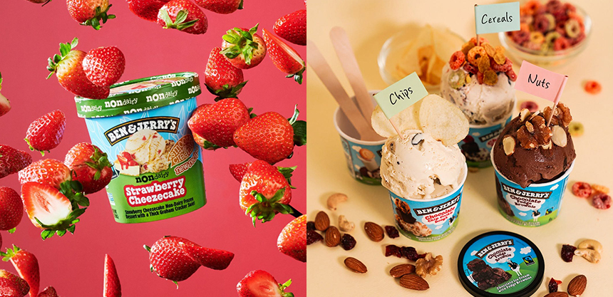 초콜릿 퍼지 브라우니와 초콜릿칩 쿠키 반죽이 듬뿍 들어간 쫀득한 식감의 ‘하프베이크드’, 고급스러운 바닐라 베이스에 체리와 초콜릿칩이 조화롭게 섞인 ‘체리 가르시아’는 벤앤제리스의 대표 메뉴로 꼽힌다. 참고로 체리 가르시아는 벤 코언이 좋아하는 미국 록 밴드 ‘그레이트풀 데드’의 보컬 제리 가르시아의 사망을 추모하고자 만든 메뉴다.