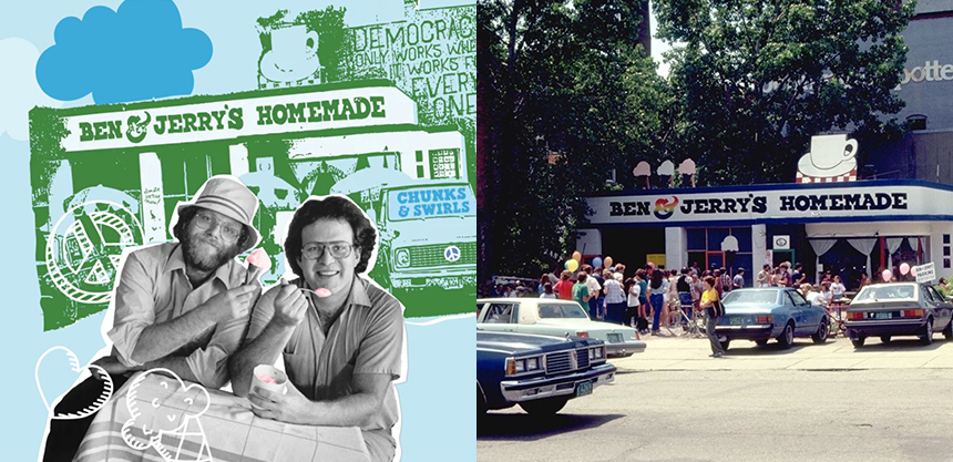 벤앤제리스는 동갑내기 친구인 벤 코언과 제리 그린필드가 1978년에 설립한 아이스크림 브랜드다. 펜실베니아 주립대학교에서 5달러짜리 아이스크림 제조 교육 과정을 수강하고 받은 1만 2천 달러의 투자금을 가지고 낡은 주유소를 개조해 첫 매장을 열었다. 27살 다운 패기였다.