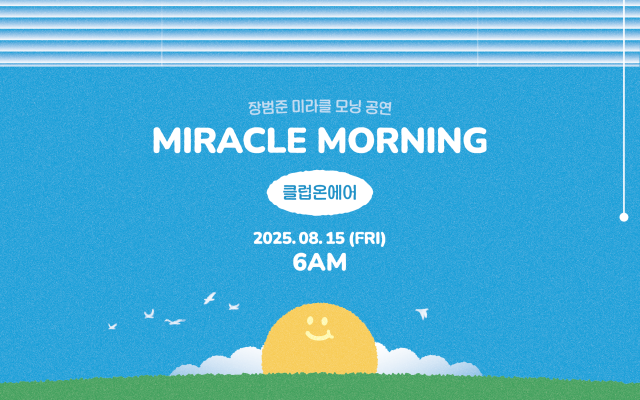 가수 장범준이 지난주 특별한 콘서트를 열었습니다. 바로 <미라클 모닝 콘서트>인데요. 잘못 보신 거 아닙니다. 콘서트 시작 시간이 오후 6시가 아닌 무려 ‘오전 6시’랍니다~ 입장 대기 시작 시간이 오전 5시 30분인 무시무시한 일정의 콘서트지만, 티켓 오픈 이후 전석 매진되었다고 해요. 가수의 목 컨디션은 걱정 마세요. 평소 장범준은 아침형 인간으로 팬들 사이에서 유명하니까요! 실제로 공연 중 그는 유난히 컨디션이 좋아 보였다고 합니다.