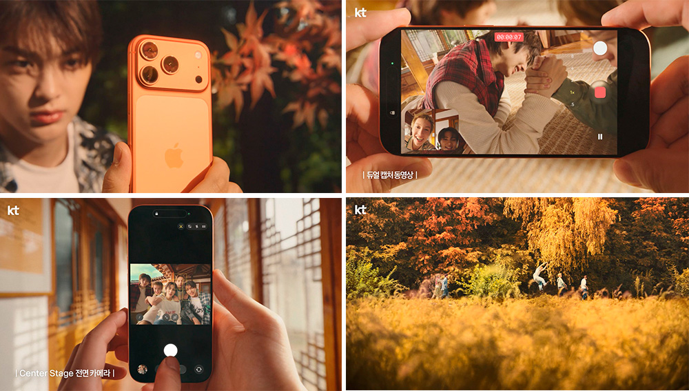 광고는 바쁜 일상과 도심에서 잠시 벗어나 한적한 교외에서 가을을 만끽하며 휴식과 창작 활동을 즐기는 코르티스 멤버들의 모습을 따라갑니다. 그들이 즐기는 K-문화 속에서 iPhone 17 Pro의 듀얼 캡처 영상 기능과 Center Stage 전면 카메라가 자연스럽게 드러납니다. 또한 티저와 본편의 배경 음악으로 사용된 <GO!>와 <What you want>는 광고의 리듬을 한층 끌어올리며 새로 나온 아이폰에 대한 기대와 설렘을 극대화했습니다.