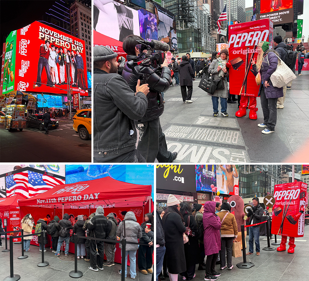 뉴욕 타임스퀘어 현장에서는 대형 옥외 광고와 함께 페스티벌이 펼쳐져 외국인 방문객들의 주목을 받았습니다. 거대 패키지 조형물, K-POP 퍼포먼스, 참여형 퀴즈, 포토존 등 다양한 프로그램을 통해 해외 소비자들이 직접 빼빼로 데이를 체험할 수 있도록 했습니다.