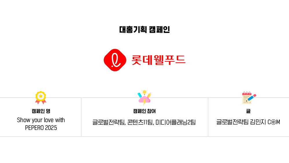 이번 캠페인을 통해 빼빼로 데이는 제품 프로모션의 영역을 넘어 문화적 상징성을 한층 공고히 했습니다. 앞으로의 목표는 국내외를 아울러 빼빼로 데이가 한국을 대표하는 기념일로 확고히 자리를 잡게 하는 것입니다. 내년에는 또 어떤 방식으로 세계와 나눔을 이어가게 될지 많은 기대 부탁드립니다.