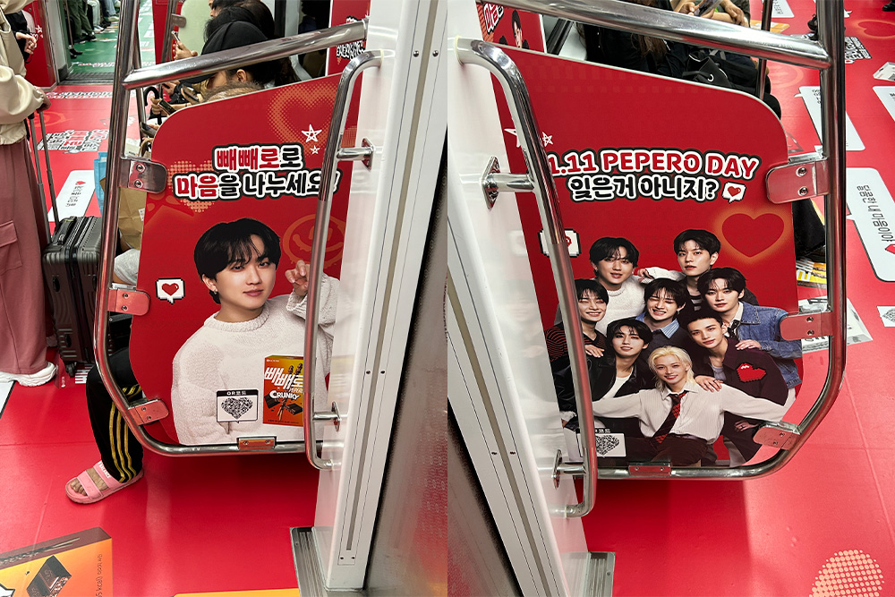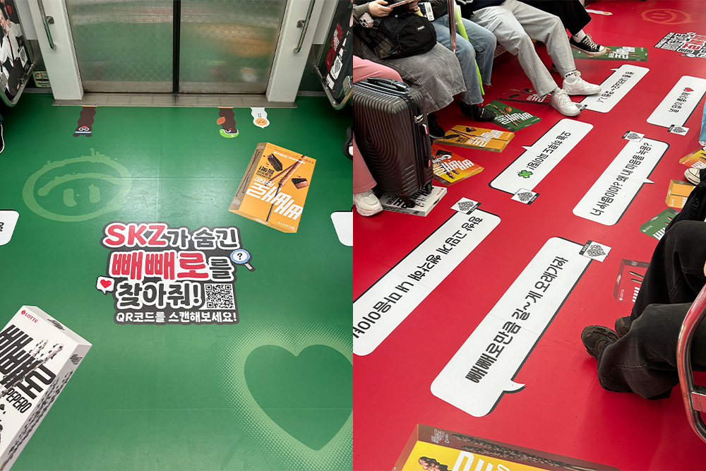 국내에서는 서울 지하철 2호선을 중심으로 소비자 체감형 캠페인이 펼쳐졌습니다. ‘스트레이 키즈가 숨긴 빼빼로를 찾아줘!’라는 미션 이벤트에는 1만 명 이상이 참여했고, 탑승 인증 콘텐츠가 SNS에서 자연스럽게 확산되며 캠페인의 파급력을 키웠습니다.