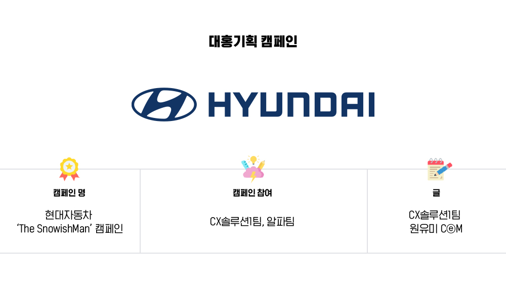 현대자동차는 2011년부터 매년 연말 ‘카운트다운 캠페인’을 통해 소망을 나누며 희망과 감동을 전하는 연말 행사를 이어오고 있습니다. 2026년 신규 캠페인 과제는 기존에 집행해오던 방식은 유지하되 연말 시그니처 캠페인으로서의 위상을 공고히 하기 위해 화제성을 높이고 브랜드 비전과의 연결성을 강화하는 것이었습니다. 이에 대홍기획은 현대자동차가 이 캠페인을 해야 하는 이유와 그 본질부터 다시 짚어보기로 했습니다.