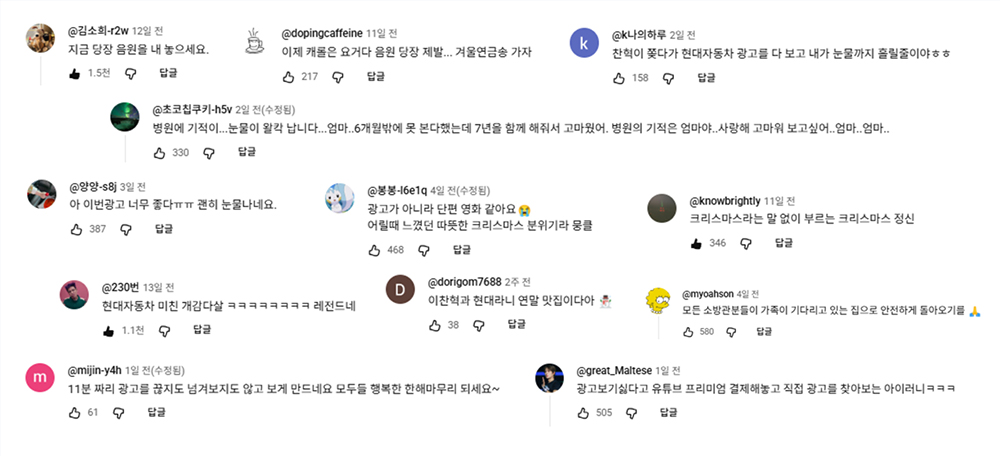 이찬혁이 직접 개사∙편곡하고 부른 펑크 캐럴 ‘We wish’. 사랑이 담긴 따뜻한 가사와 신나는 리듬이 들을수록 중독성을 더해갑니다. 해당 음원은 온에어 10여 일 만에 오가닉 조회수 24만 회를 넘기는 성과를 기록했으며, 노래뿐만 아니라 캠페인 전반에 대해서도 ‘이번 광고 너무 좋다, 감동적이다, 당장 음원을 내 놓아라’ 등 긍정적인 평가가 이어지고 있습니다.