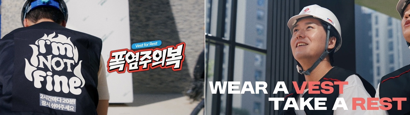 디자인 부문 대상작인 롯데건설 <폭염주의복>은 건설 현장의 안전이라는 무거운 주제를 창의적으로 풀어냈다. 작업복 뒷면에 특수 변색 잉크를 적용해 기준 온도에 도달하면 ‘열쉼열쉼’, ‘더워합니다’ 등 휴식 안내 문구가 자연스럽게 드러나는 방식이다. 노동자들이 휴식 시점을 직관적으로 인지할 수 있어 참여자 만족도 97%라는 높은 성과를 거뒀다. 대홍기획과 롯데건설은 지난해 건설노동자의 자부심을 높이는 <포트폴리모> 캠페인에 이어 2년 연속 대상을 수상했다.