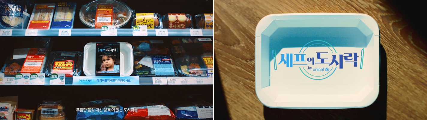 브랜드 익스피리언스 & 액티베이션 부문 대상 수상작인 유니세프 <세프의 도시락>은 편의점과 마트에 진열된 빈 도시락과 QR코드를 활용해 전세계 기아 문제의 심각성을 알리고 누구나 쉽게 기부에 참여할 수 있도록 한 캠페인이다. 일상 속 임팩트 있는 아이디어로 캠페인 론칭 단 며칠만에 약 4천 끼의 식사가 해외 결식 아동에게 전달되며 성과를 인정받았다.