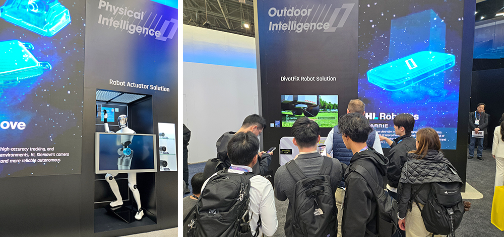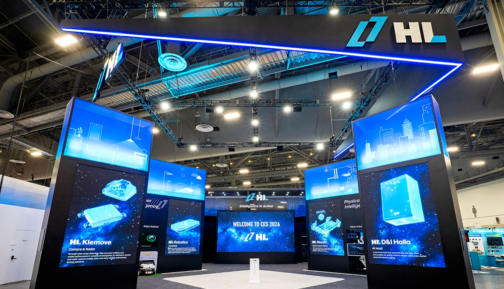 HL그룹은 이번 CES를 통해 자동차 부품 중심 기업에서 인공지능(AI)·로보틱스 기반의 미래 기술 그룹으로 도약하겠다는 방향성을 공식화했는데요. 대홍기획은 HL만도, HL클레무브, HL로보틱스, HL디앤아이한라 등 4개 그룹사의 미래 주도 사업을 하나의 스토리로 통합하는 전시 콘셉트 ‘Intelligence in Action’을 구축하고, 이를 관람객이 직접 체험할 수 있는 공간을 구현했습니다.