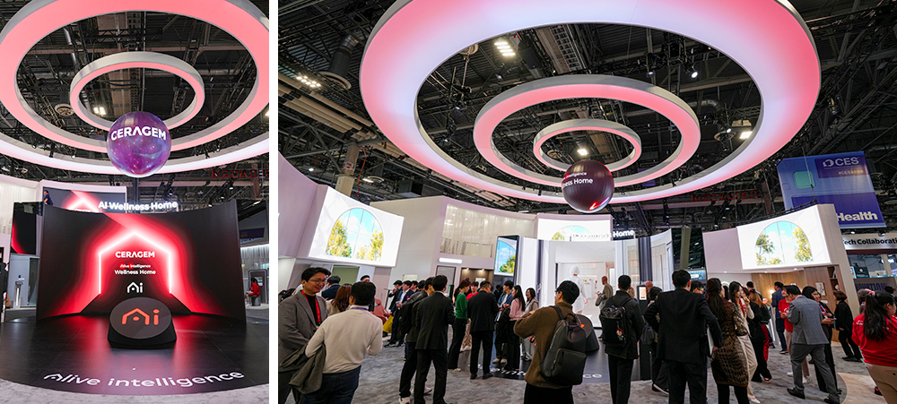 세라젬은 '나를 가장 잘 아는, 살아 숨 쉬는 집'을 주제로 한 'Alive & Intelligence Wellness Home'을 이번 전시에서 선보였습니다. 3년 연속 CES 혁신상을 수상하며 기술력을 인정받은 세라젬은 집 안의 스마트 헬스케어 기기들이 유기적으로 연결돼 주거 공간 전체가 하나의 건강 관리 플랫폼으로 작동하는 미래형 모델을 제시했습니다.