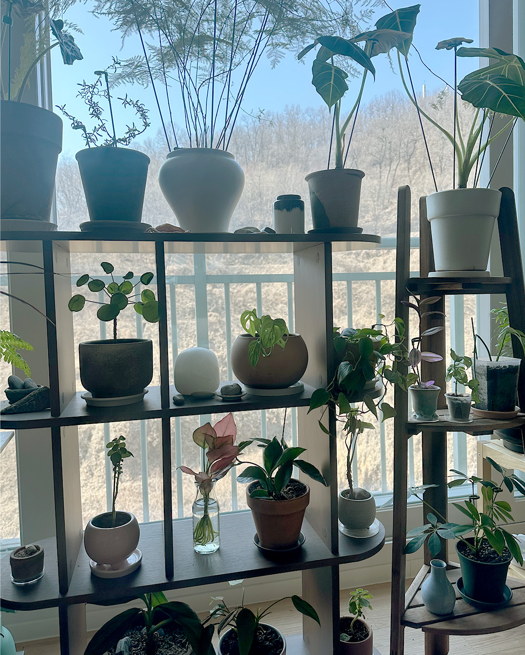 해가 갈수록 식물의 종류가 늘어나고 식물존의 라인업도 다양해지지만, 그중에서 내가 가장 아끼는 건 아픈 식물들이다. 잘 자라다가 갑자기 멈춘 식물들, 갑자기 색이 변하는 식물들은 이러다 떠나 보내게 될까 봐 늘 몇 번을 더 돌아본다. 자주 돌아보면 물도 자주 주게 돼 빨리 죽는다는 말도 있지만, 식물이 조금 더 잘 자랄 수 있는 환경을 만들어주는 것이 내 역할이다. 순환이 되지 않는다면 겨울에도 선풍기를 틀어 공기의 흐름을 바꿔주고, 식물끼리 너무 붙어 있으면 틈을 만들어주고, 성장을 멈췄다면 해가 잘 드는 곳으로 잠시 옮겨주거나 숨을 쉴 수 있도록 흙에 구멍을 내주는 등 간접적이나마 내 손길이 닿을 때 더 잘 자라는 경우도 있다. 조금 떨어져서 지켜보며 식물 저마다의 흐름과 시간을 기다려주는 일이 식집사의 최선 아닐까? 지치거나 우울하거나 힘이 나지 않는다면 작은 화분이라도 곁에 두길 추천한다. 내 곁에서 제 호흡으로 자라는 생명에게 의외로 큰 힘을 얻을 수 있다.