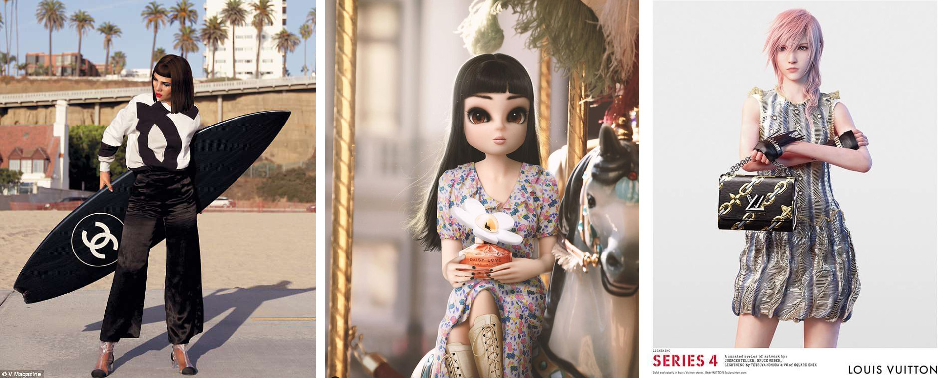 SNS에서 영향력을 발휘하며 사람처럼 소통하는 이들의 파급력은 웬만한 슈퍼스타는 명함도 못 내밀 정도다. LA에 거주 중인 패션모델이자 뮤지션, 연 수익 160억 원, 포스팅 하나당 약 천만 원을 호가하는 19세 ‘릴 미켈라’는 샤넬, 프라다, 몽클레어, 지방시 등 다양한 브랜드와 협업 활동을 하고 있다. 디올은 환경과 평등을 지향하고 동물학대를 반대하는 눈이 큰 SD캐릭터에 가까운 18세 프랑스 소녀 ‘누누리’를, 루이비통은 게임 파이널판타지의 주인공으로 개성 있는 외모를 갖춘 ‘라이트닝’을 모델로 활용했다.